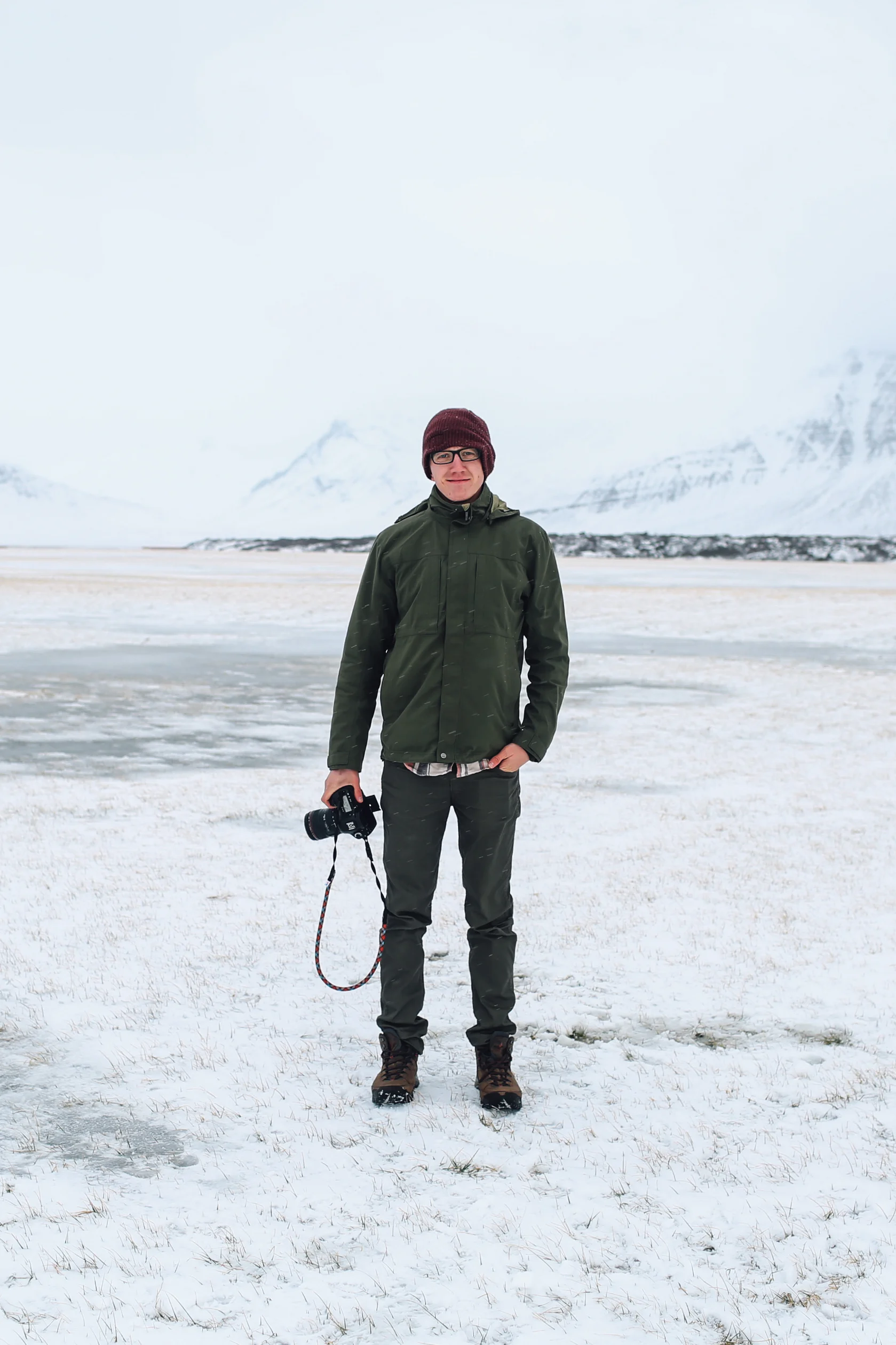 He approaches every adventure with grace, resourcefulness and know-how. Be it making coffee beneath the northern lights, providing extra batteries to those of us that forget to charge our cameras, or climbing icy rocks with full photo gear on his back. This man knows how to travel.