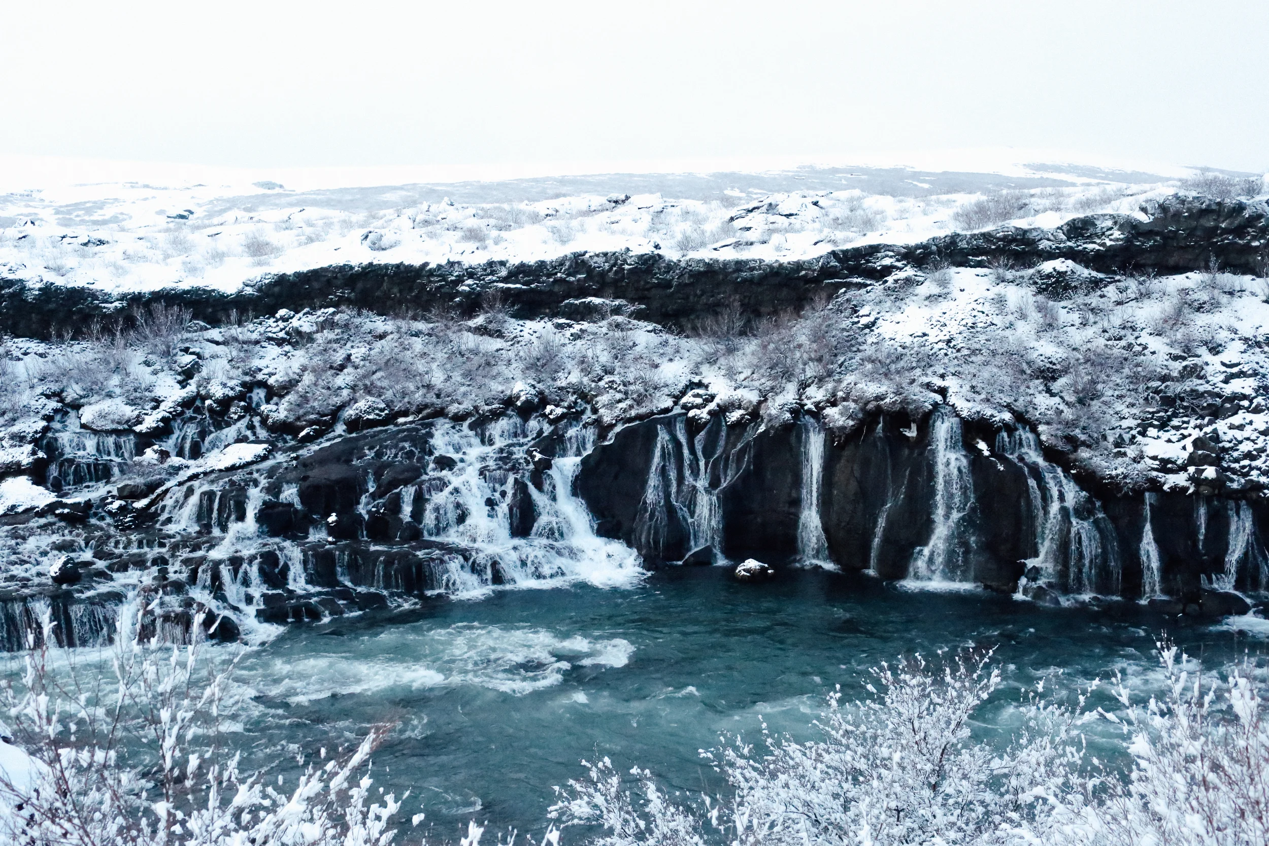 Hamrafoss is a wall of tiny waterfalls, that all feed into the same river.