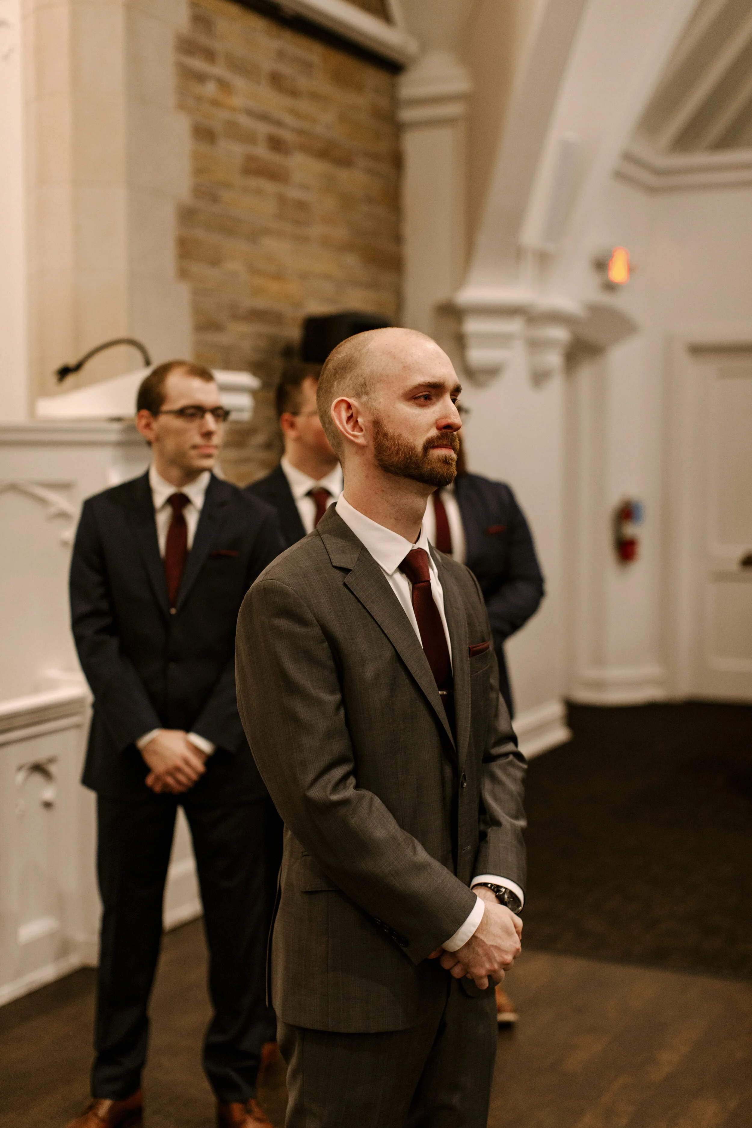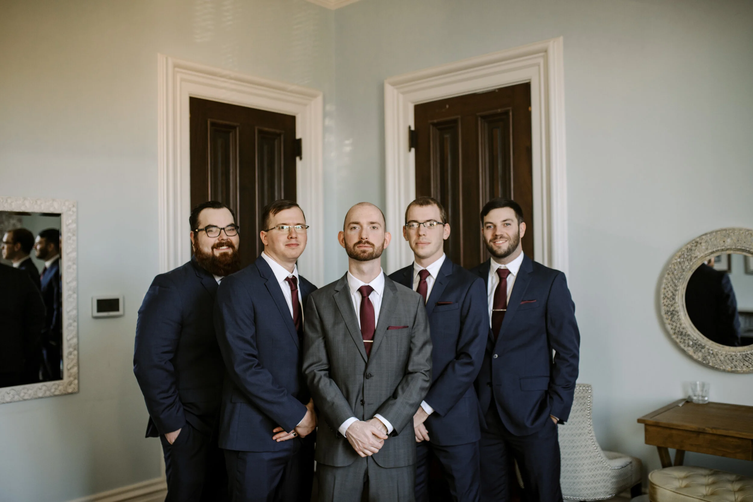 I think my favorite part of this venue, aside from the crown molding, is that the getting ready rooms for the guys and girls are distinctly colored, equally beautiful, and just across the hall.